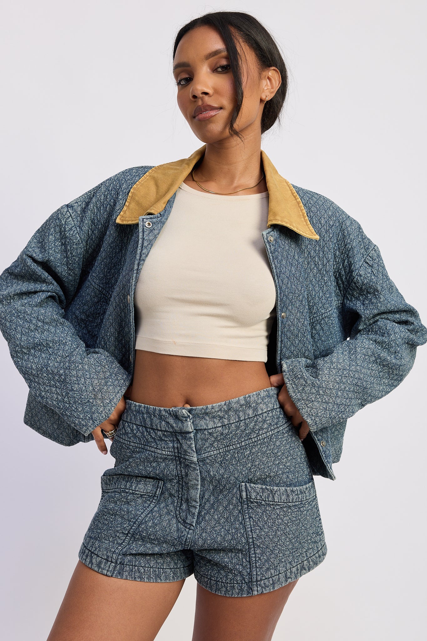 Denim Jacquard High Waist Shorts
