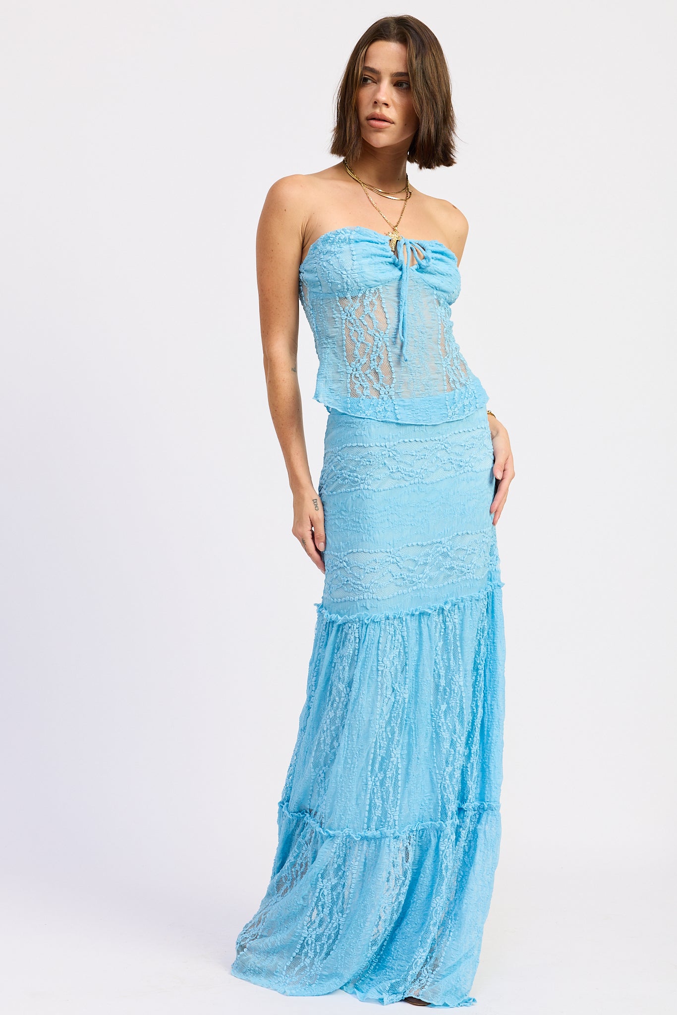 Keyhole Strapless Top With Front Tie